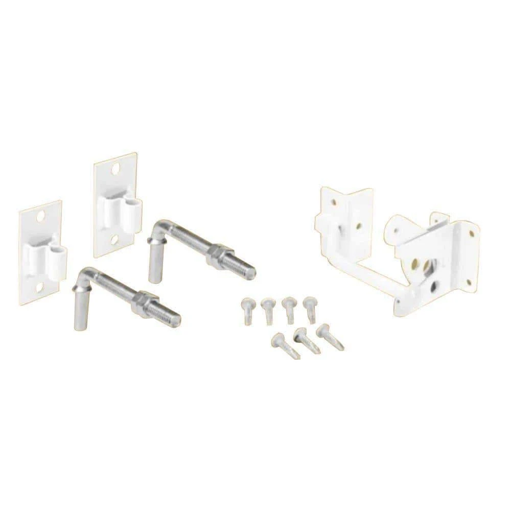 The White Steel Flat Wall Gate Hardware Kit is designed for use in gate mounting applications. This kit is perfect to finish the fence job when connecting a gate to a flat surface. Installation is quick and easy.