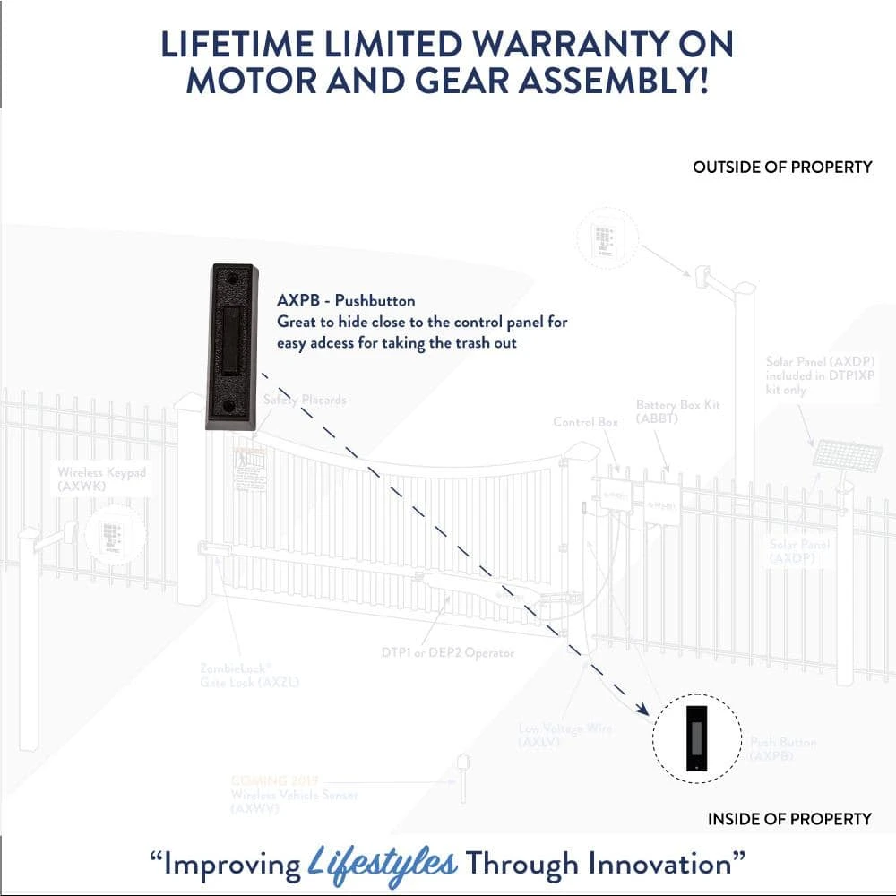 The Push Button is a push switch to operate the gate opener in the opening and closing directions. This non-illuminated button easily connects with two wires. To the main system controller to allow you to open, stop, or close the gate opener by simply pushing the button.